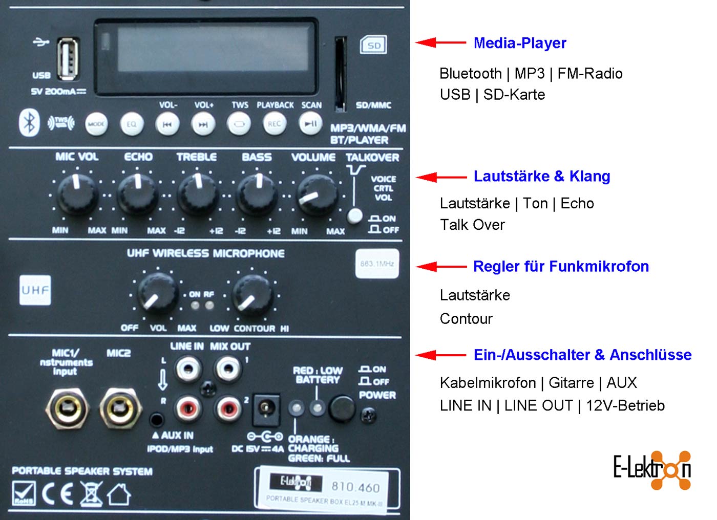E-Lektron EL25-M MK-III 500W - Media-Player, Akku, Funkmikrofon, Bluetooth & FM-Radio